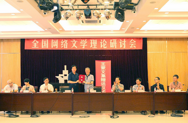 研討會開始前,作家王蒙向中國作協(xié)北戴河創(chuàng)作之家贈送了45卷本的《王蒙文集》,并對網(wǎng)絡(luò)作家和網(wǎng)絡(luò)文學(xué)的未來表達了殷切期望。中國作協(xié)副主席陳崎嶸接受贈書,并代表中國作協(xié)向王蒙頒發(fā)了收藏證書。